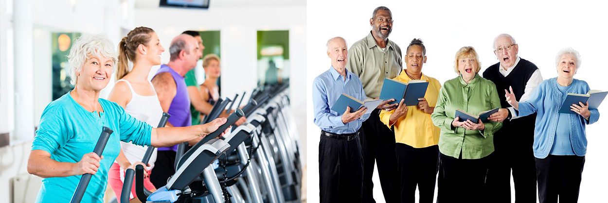 15763288 – six happily singing senior adults on a white background
