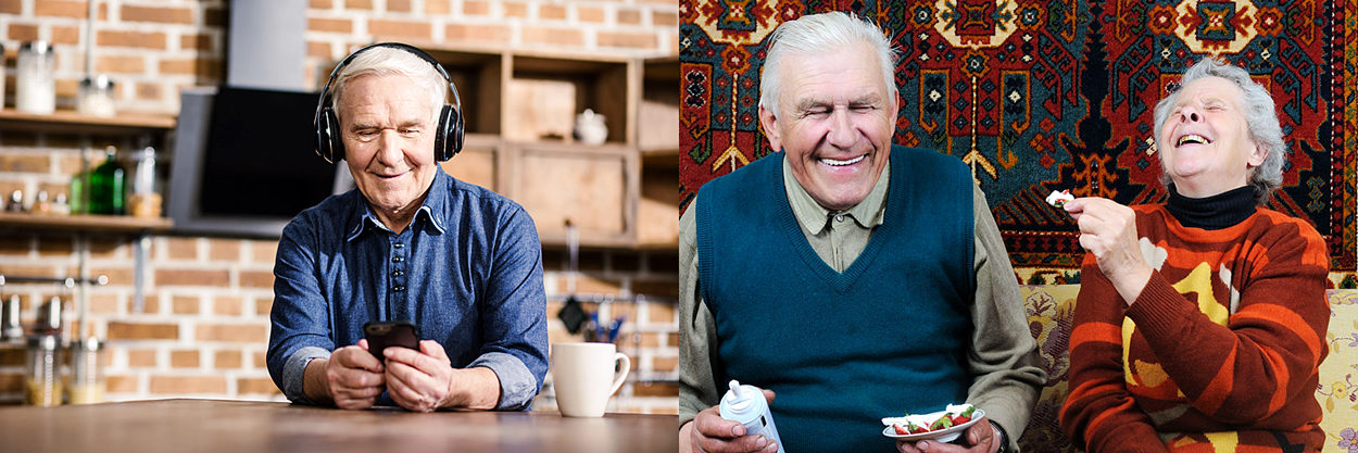 103844514 – joyful time. happy nice elderly man sitting at home while listening to music
