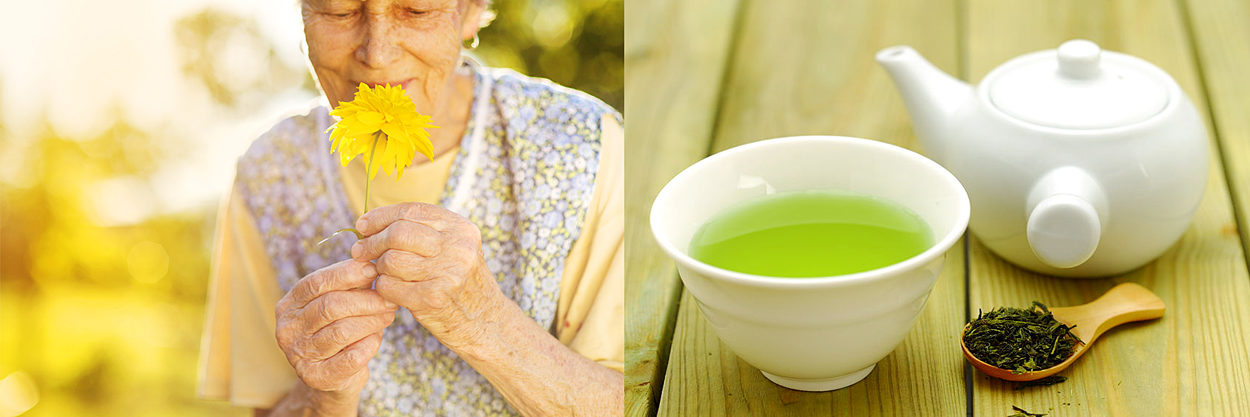 31963399 – detail of senior woman in apron with yellow flower in the sunny garden