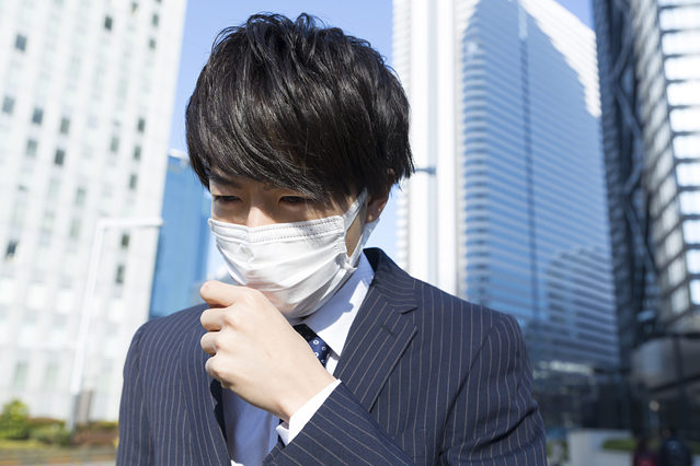 Asian office women skin damage from sun UV city air pollution concept